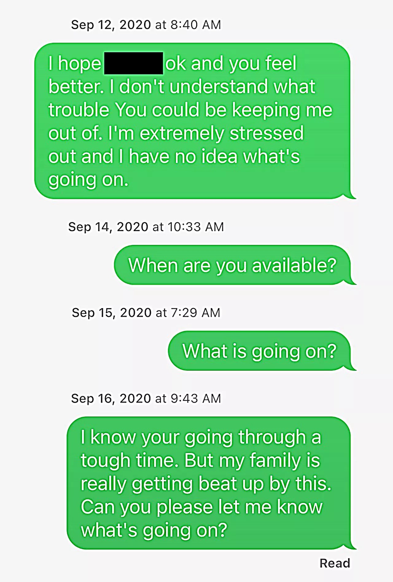 Stoots: “I know you’re going through a tough time. But my family is really getting beat up by this. Can you please let me know what’s going on?”