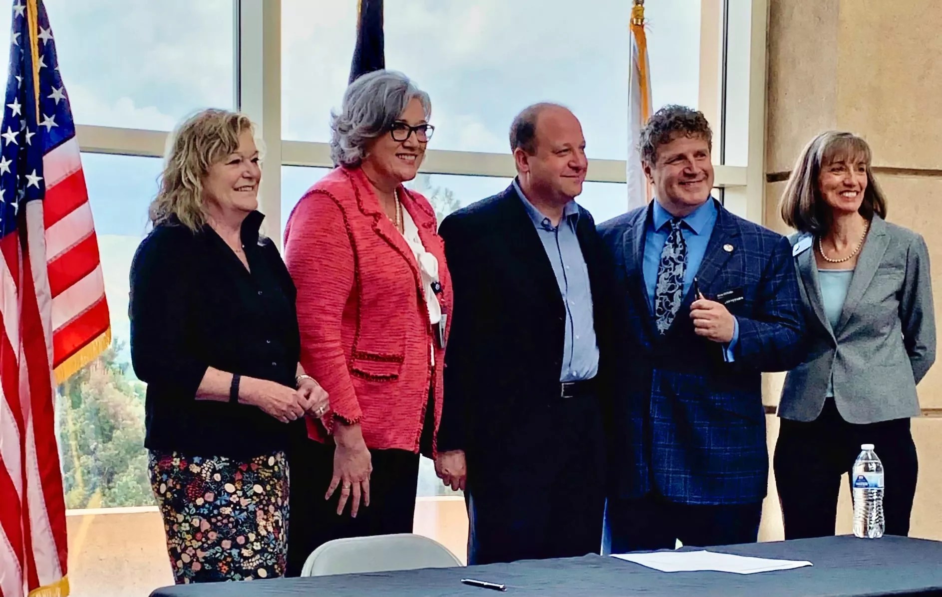 Jerry DiTullio (second to the right) poses with Governor Jared Polis and state legislators during the signing of Senate Bill 21-279, Delinquent Interest Payments Property Tax.