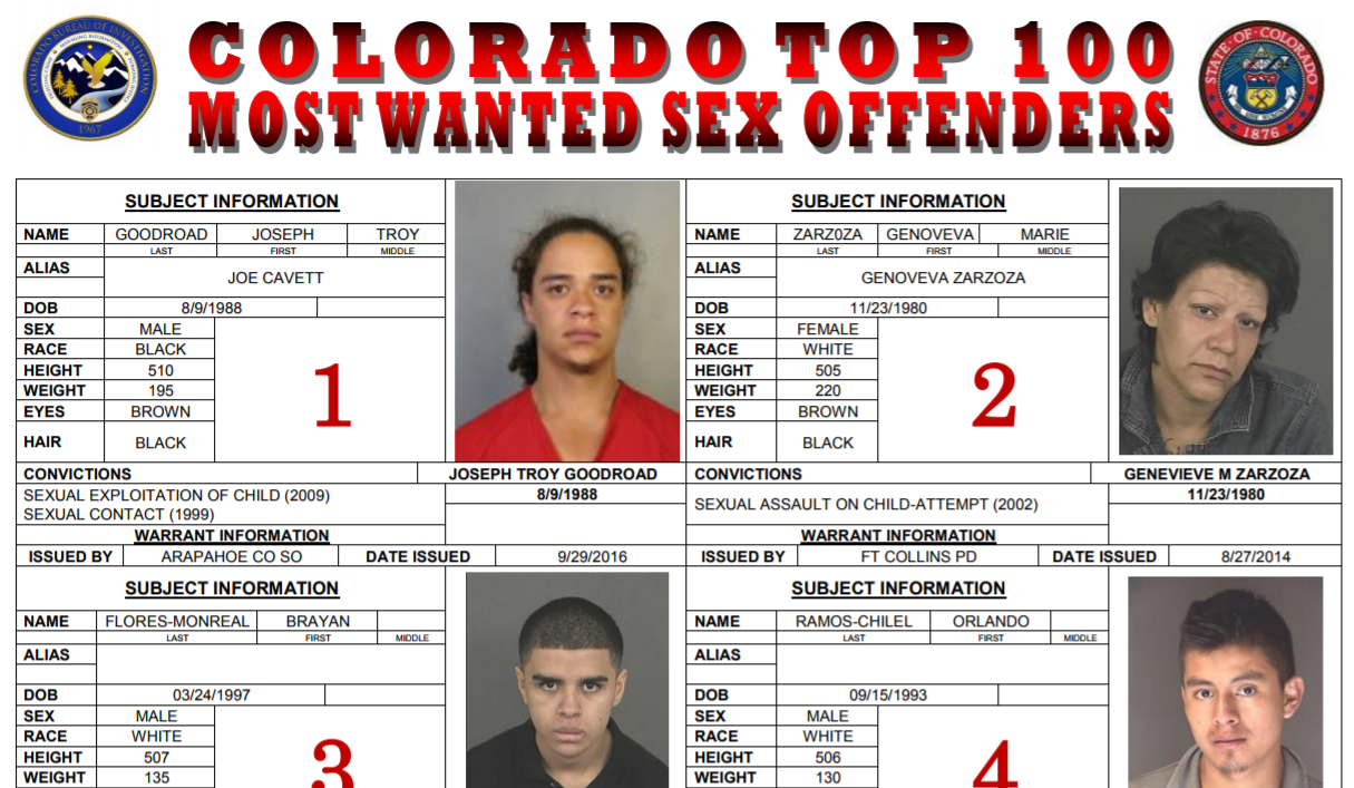 State law requires convicted sex offenders to register with local law enforcement on an annual basis or every time they move to a new address. Those convicted of “child sex crimes” are also required to provide all email addresses and chat-room identities. Much of their personal information then becomes available on the Colorado Bureau of Investigation‘s website; it also finds its way to for-profit operations peddling background checks, neighborhood watch groups and other sites.