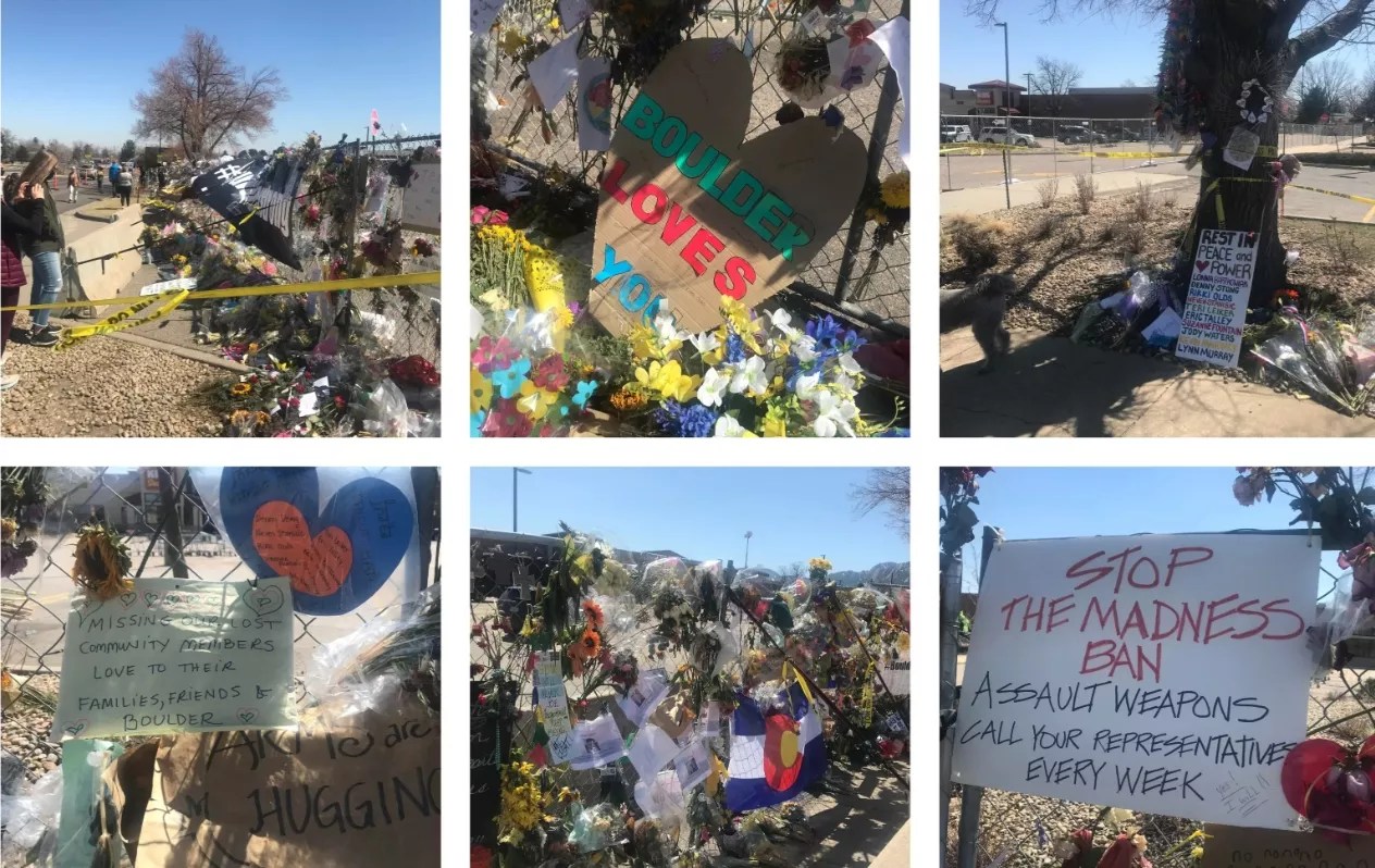 Images from a memorial that materialized after the 2021 Boulder King Soopers shooting. Photos by Michael Roberts
