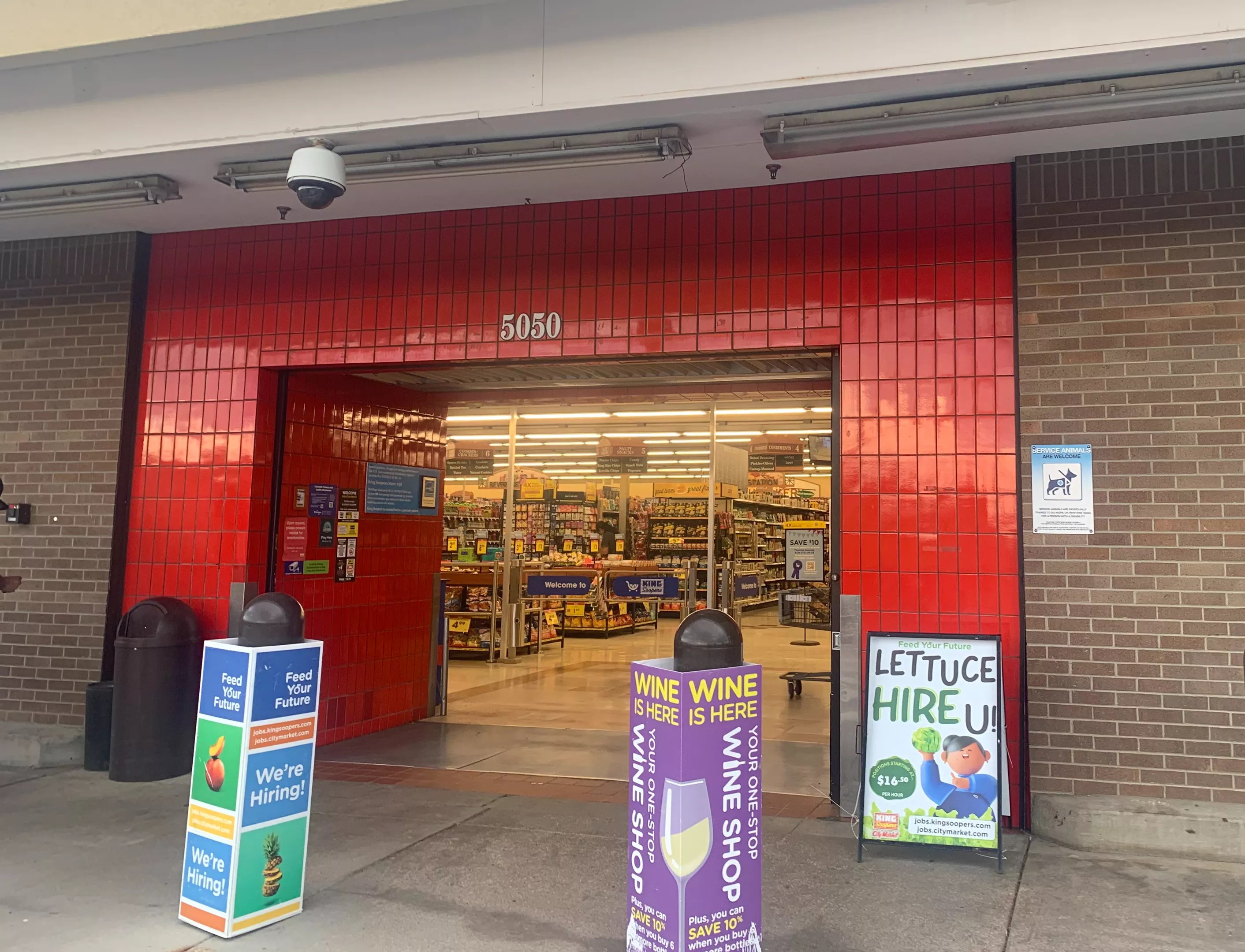 The entrance of the Centennial King Soopers where Santino Burrola caught the shoplifters on video.