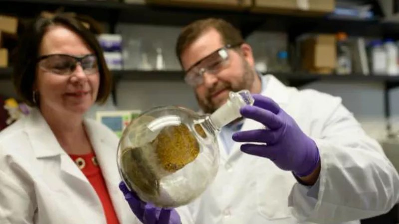 Christopher McCurdy, right, examines a flash of kratom with his late wife and fellow researcher, Bonnie Avery.