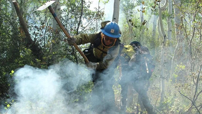 Firefighters working to extinguish a hotspot at the Lake Christine fire.