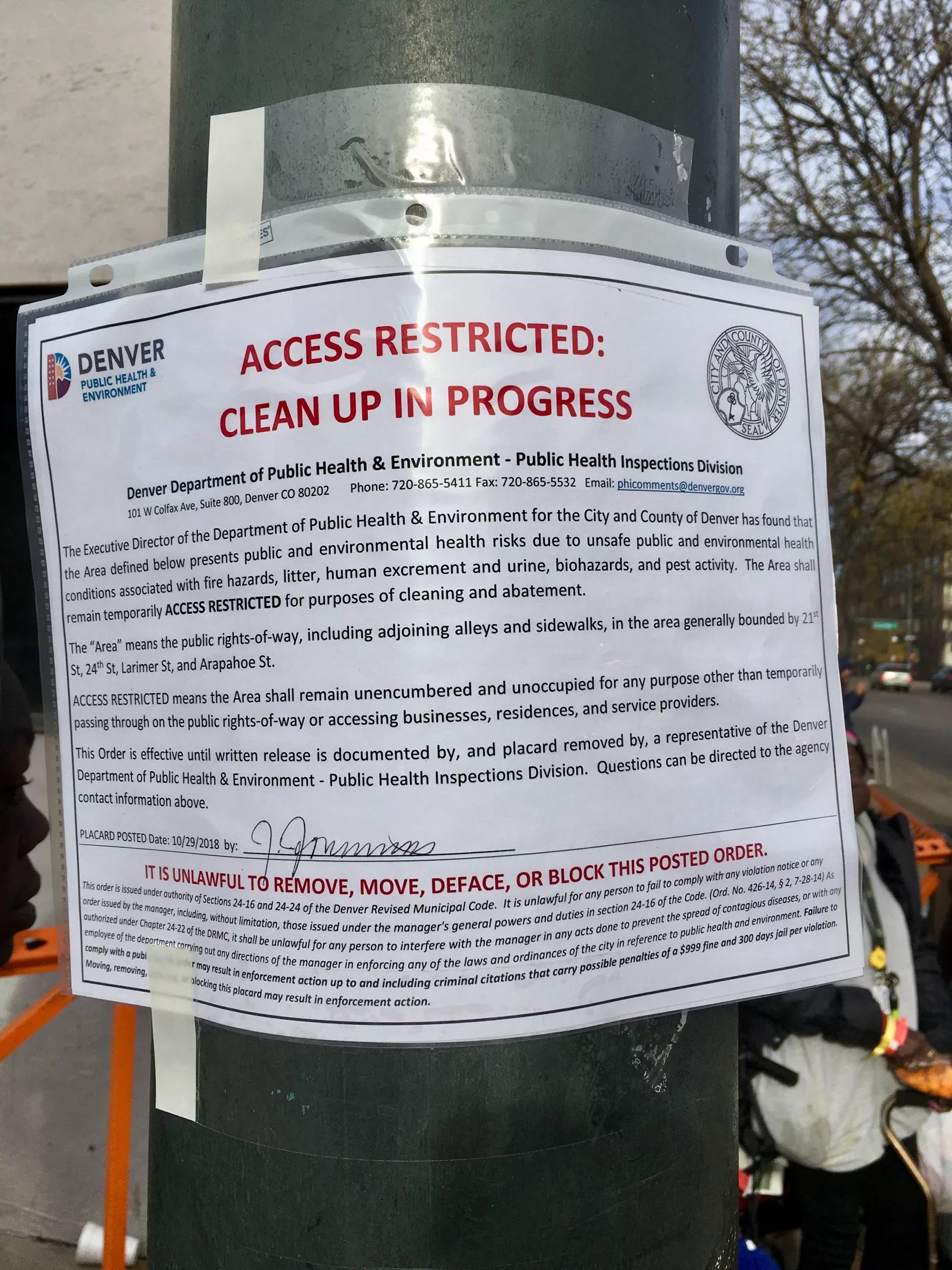 While this morning’s sweep was large in scale, the atmosphere felt less combative compared to some of the sweeps that took place in 2016 – those that landed Denver in court.
