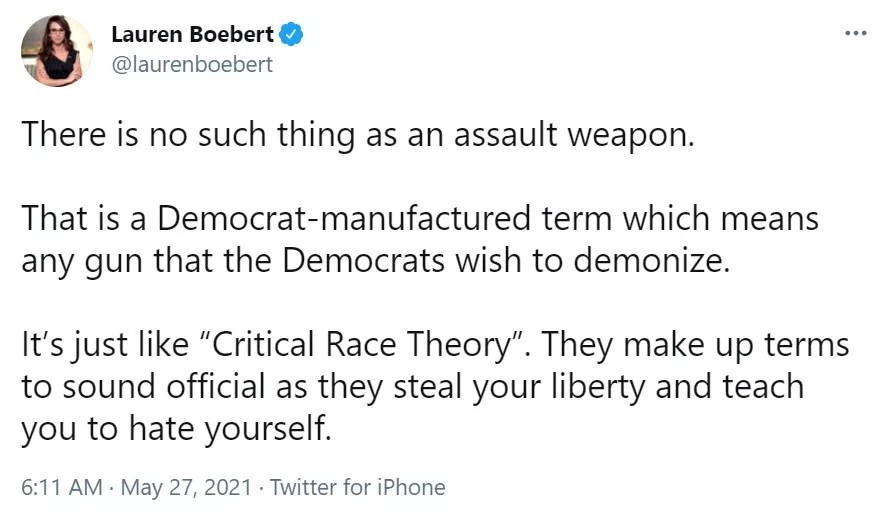 Let’s set aside the gaslighting bullshit. There’s actual history behind the terms “assault weapon” and “critical race theory.”