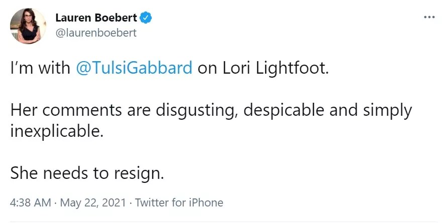 Chicago mayor Lori Lightfoot has her problems, just like Tulsi Gabbard and, well, Boebert. But it didn’t escape our notice that these last two paragraphs could have been lifted from any number of social media messages about her social media messages. But the rhyme is very 1980s Jesse Jackson, so good pull.