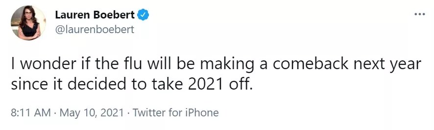 But…the masks…kept the flu…and she’s arguing against…. Seriously, Congresswoman Boebert, look up “self-own.” We beg of you.