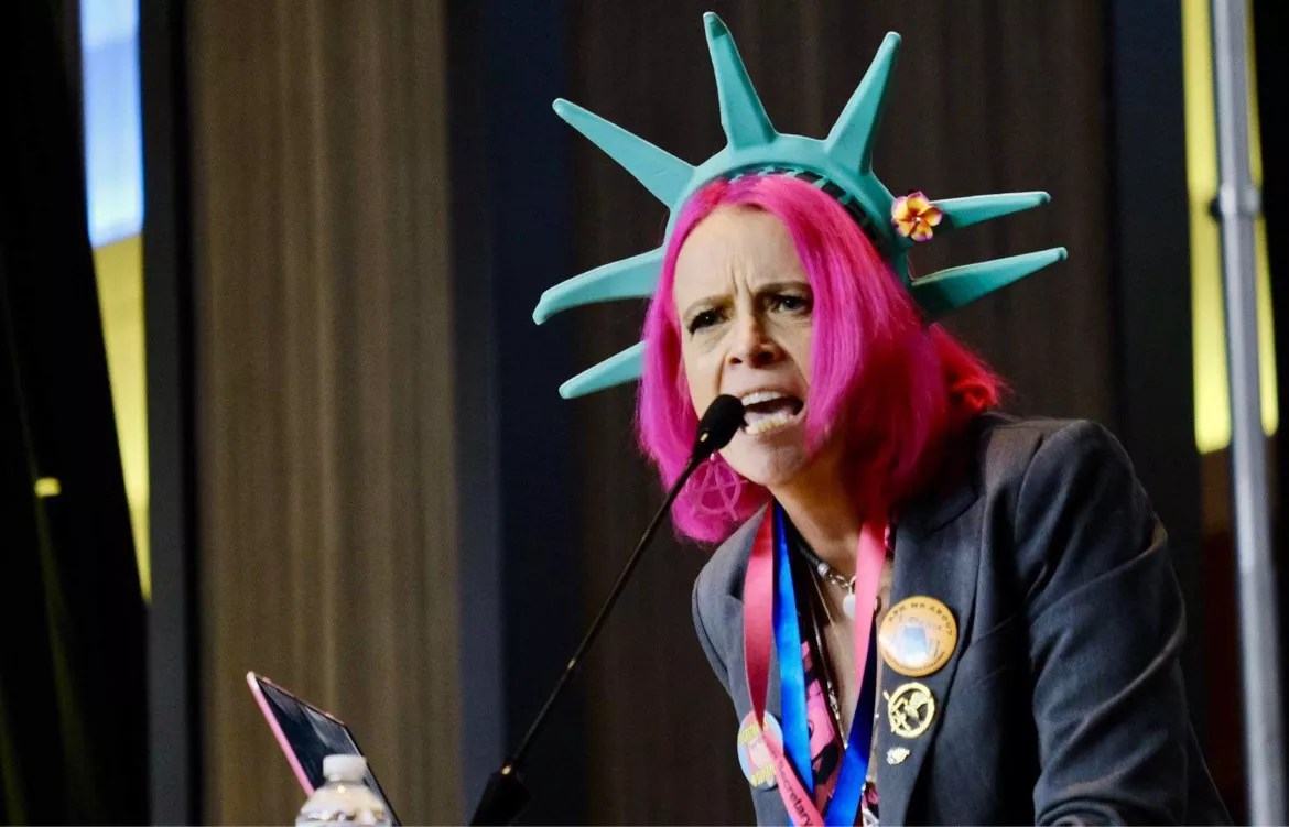 The Castle Rock Libertarian, who is known for her electric pink hair and Statue of Liberty crown, had found herself in the middle of a schism over the direction the party should take.