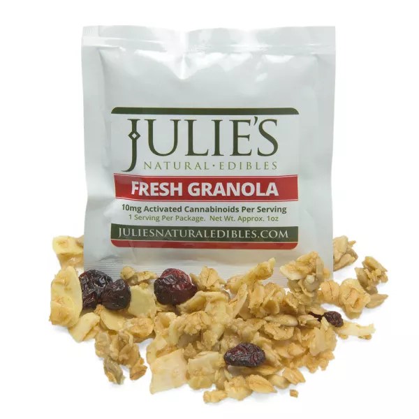 For one of the most unique products on this list, Julie’s Natural offers infused granola made from gluten-free rolled oats, dried fruits, seeds and nuts. The mix is infused with strain-specific cannabutter and maple syrup.