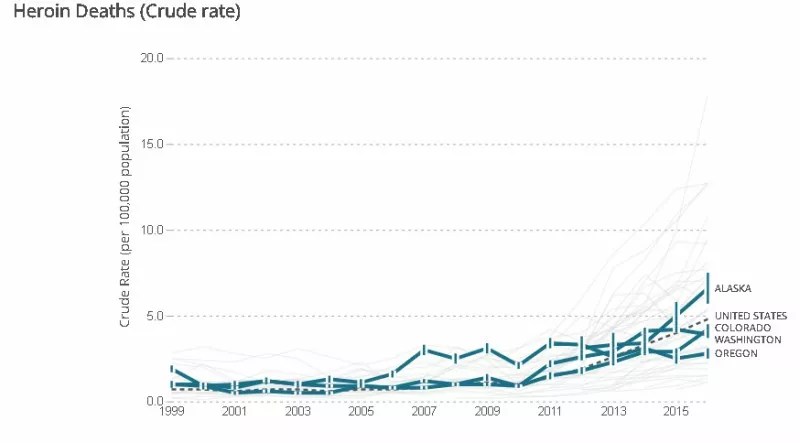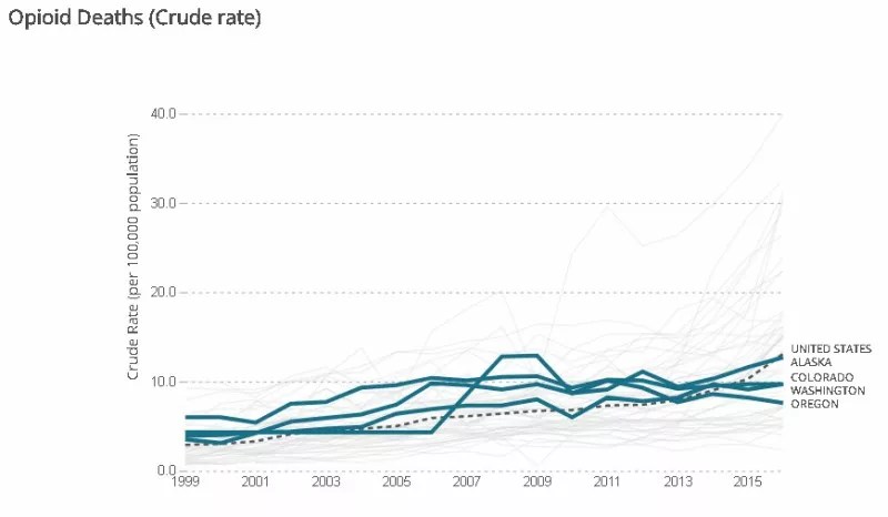 The same goes for the rate of opioid deaths in Colorado, as seen here.