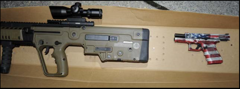 Some of the arms seized during an FBI raid on Cleveland Grover Meredith Jr.’s Washington, D.C., hotel room and vehicle.