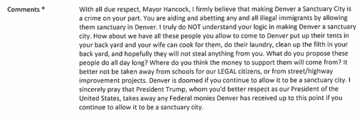 This comes despite constant efforts by Mayor Hancock and other city officials to distance themselves from the term, which has no formal legal definition. Nowhere in the new immigration bill are the words “sanctuary city.” Even so, many who oppose the city’s actions seem to think that Denver has formally declared itself a sanctuary city: