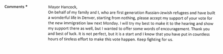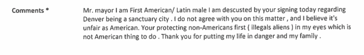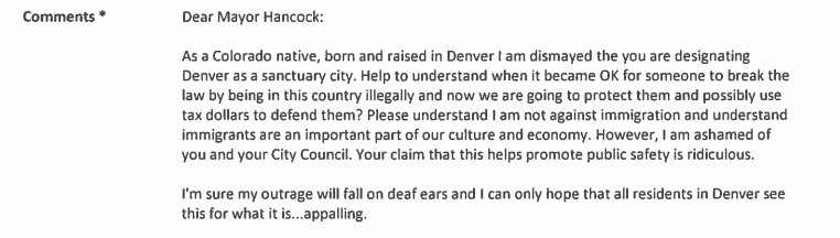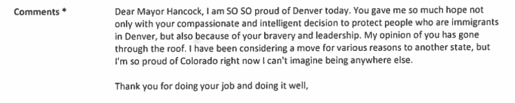 But for all the vitriol, many people, including some immigrants, declared strong support for Denver’s stance on immigration. Here are a handful of messages in support of Denver’s new immigration ordinance: CORA Response CORA Response