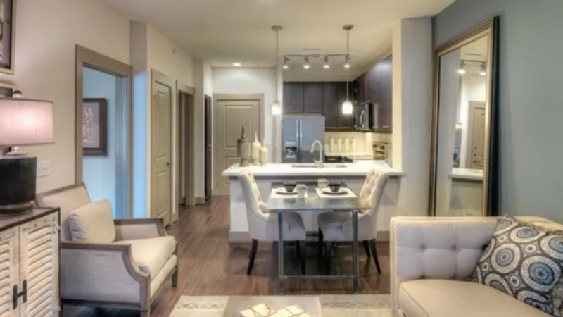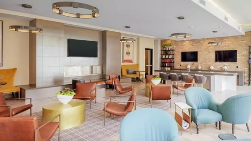 Inside the common area of a Denver apartment building offering one-bedrooms.