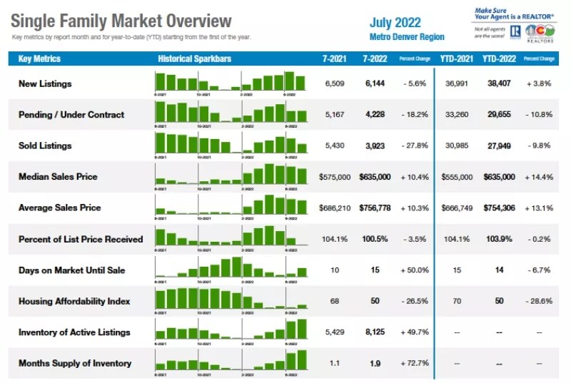 While the $635,000 median price for Denver area homes during July is down 1.7 percent from June, that figure is 10 percent higher than it was at this time last year. And the average July sale price of $756,778 is also up more than 10 percent on a year-over-year basis.