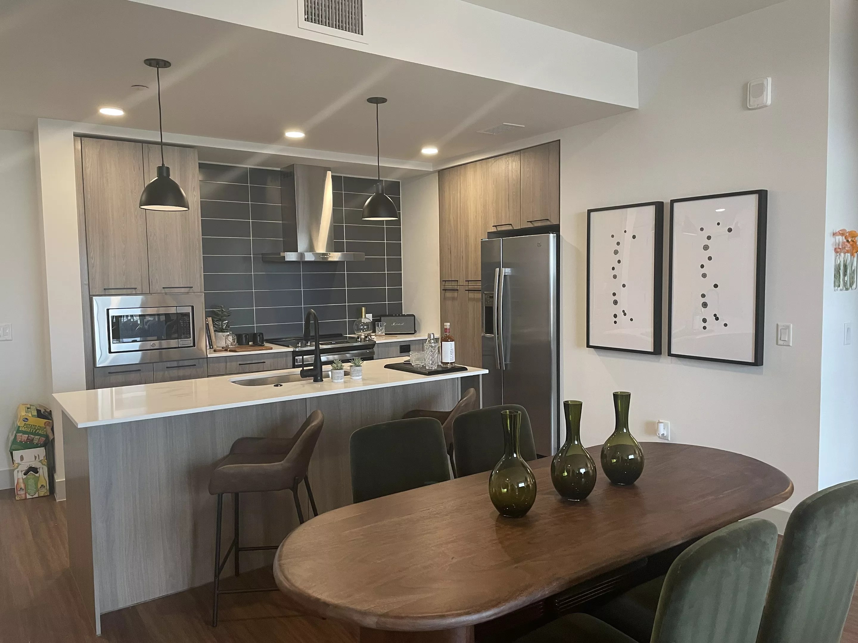 The Building: The 397-unit building is still receiving its finishing touches after opening to residents in July, but there are several levels ready to go. Mica RiNo just opened the last of its eleven floors for lease, and the brand-new building is filled with green hues and engaging artwork to go with its stellar location.