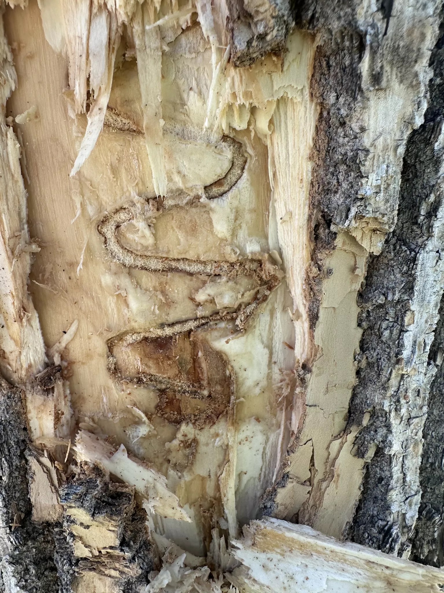 A tree infected by the emerald ash borer.