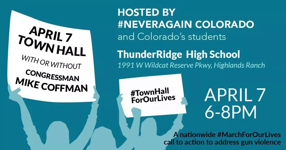 On Saturday, April 7, Never Again Colorado, the group behind the Denver march, will host a town hall at 6 p.m. at ThunderRidge High School in Colorado’s 6th Congressional District, with speakers including Colorado students and survivors of mass shootings.