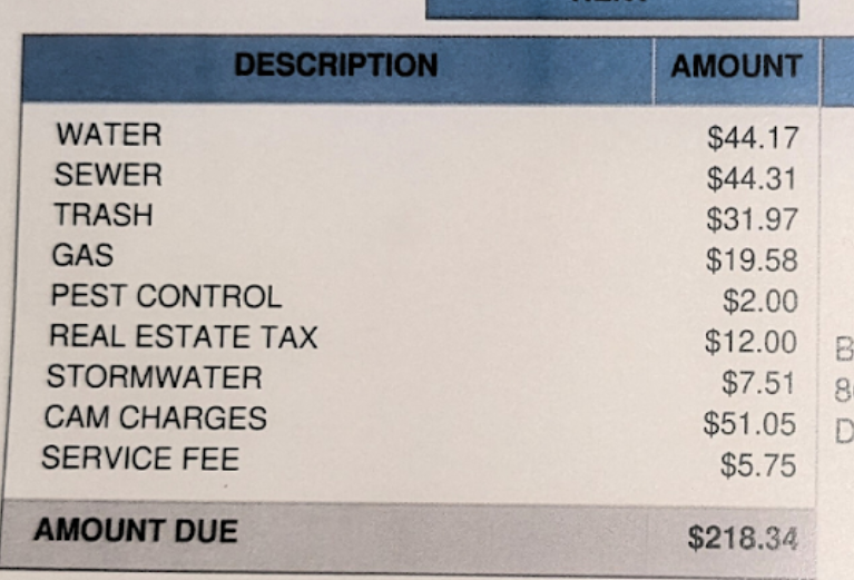 According to Smith, her complex charges her $180 per month for line items such as pest control, real estate tax, common area maintenance and processing fees. Because Smith is still working through the paperwork to establish a disability income due to her spinal fusion and post-traumatic stress, she only makes $224 per month doing odd jobs.