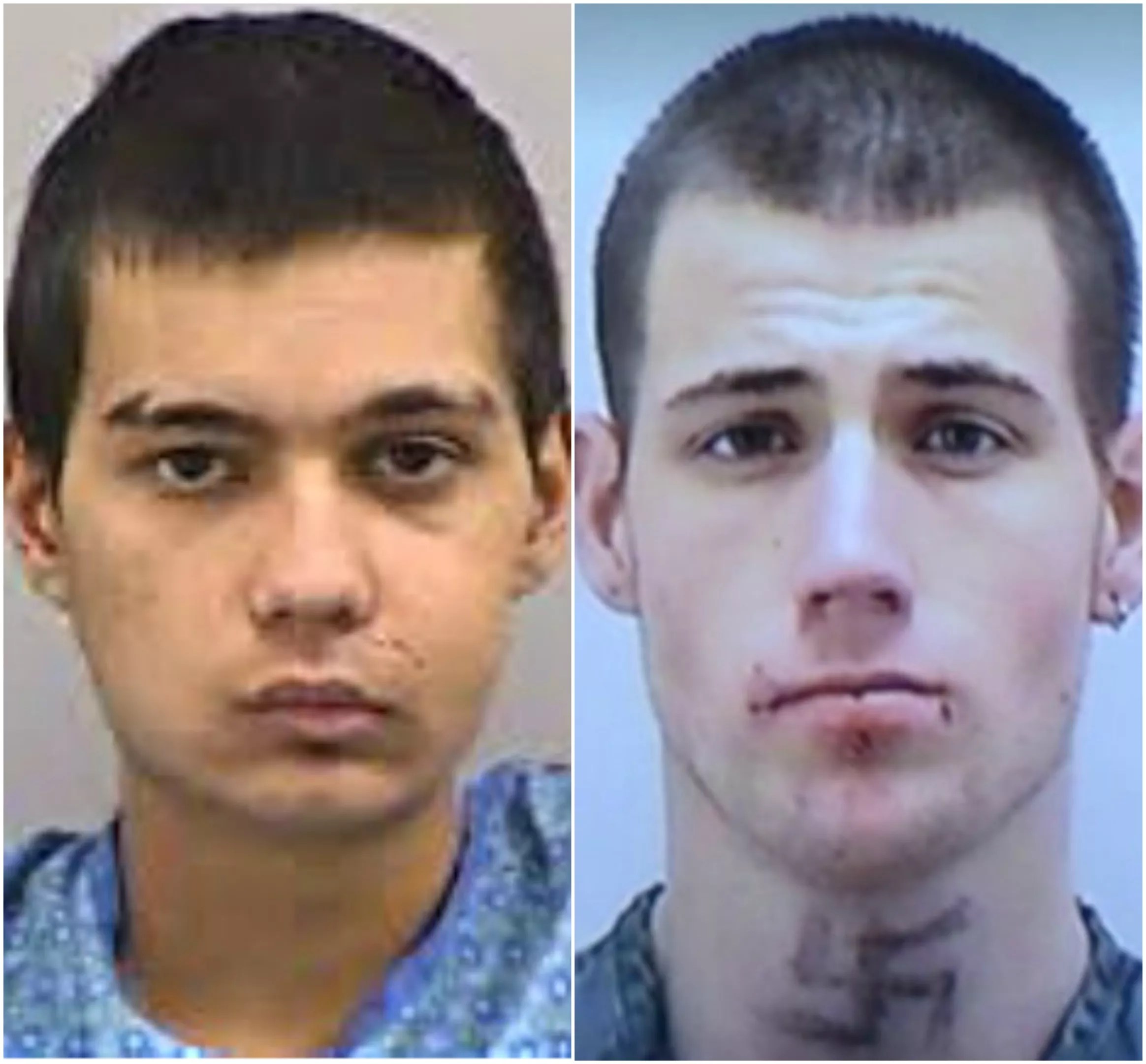 Booking photos of Jason Sutton and Perice Langewisch. Note that the swastika on Langewisch’s neck isn’t a tattoo but was drawn on with a marker.