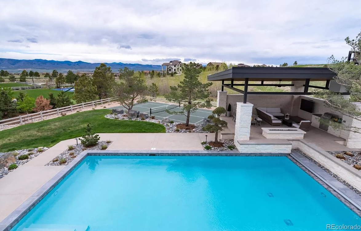 A pool and outdoor kitchen in Michael Malone’s new backyard.