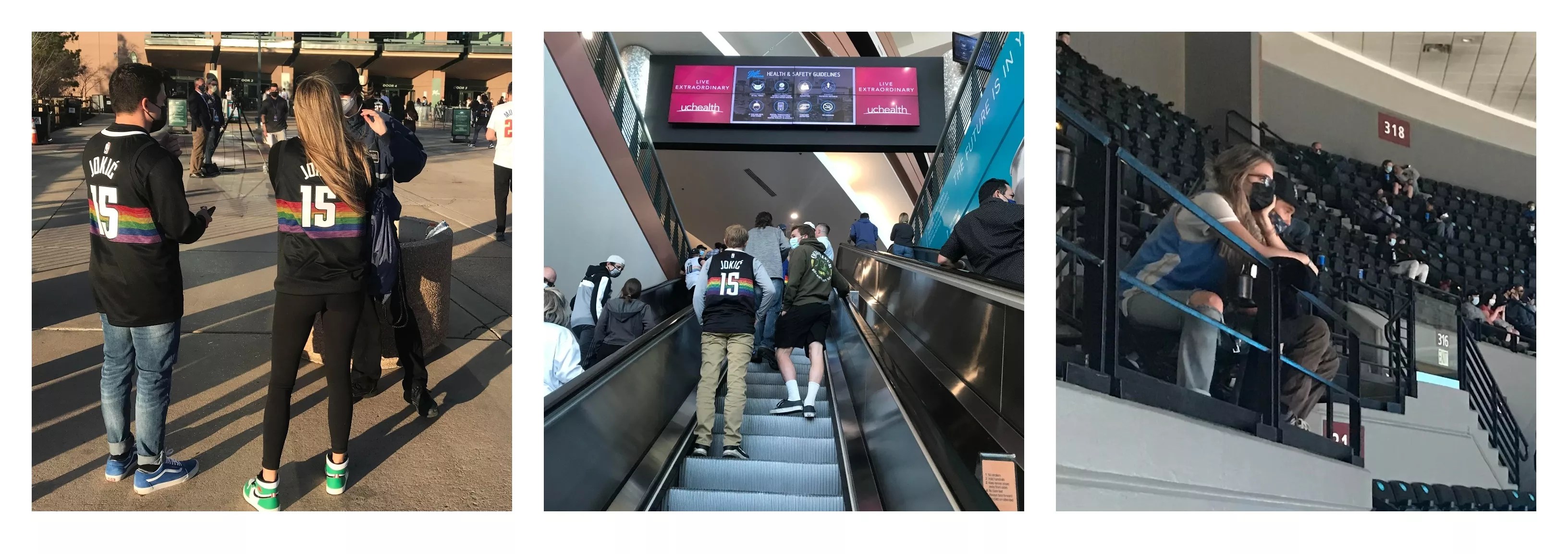 Over a year into the pandemic — and despite worsening COVID-19 data and an explosion of outbreaks in the state — more indoor events are starting to roll out now, including last night’s Denver Nuggets game at Ball Arena, which I attended with my daughter Lora, who’d bought us tickets for my birthday.
