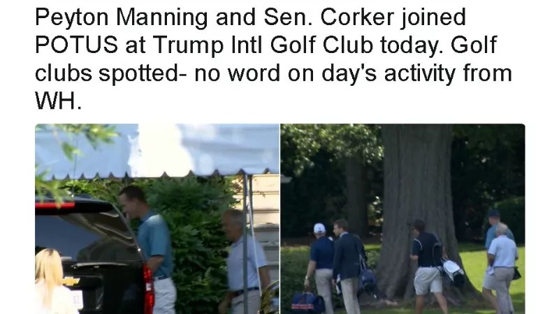 Moreover, we noted in a 2012 post introducing Manning to Broncos fans that he has donated money to Republican candidates, including Tennessee Senator Bob Corker, who joined Peyton and Trump on the links at Trump International Golf Club over the weekend (right around the time the President was tweeting in typically bellicose fashion about the latest London terror attacks).
