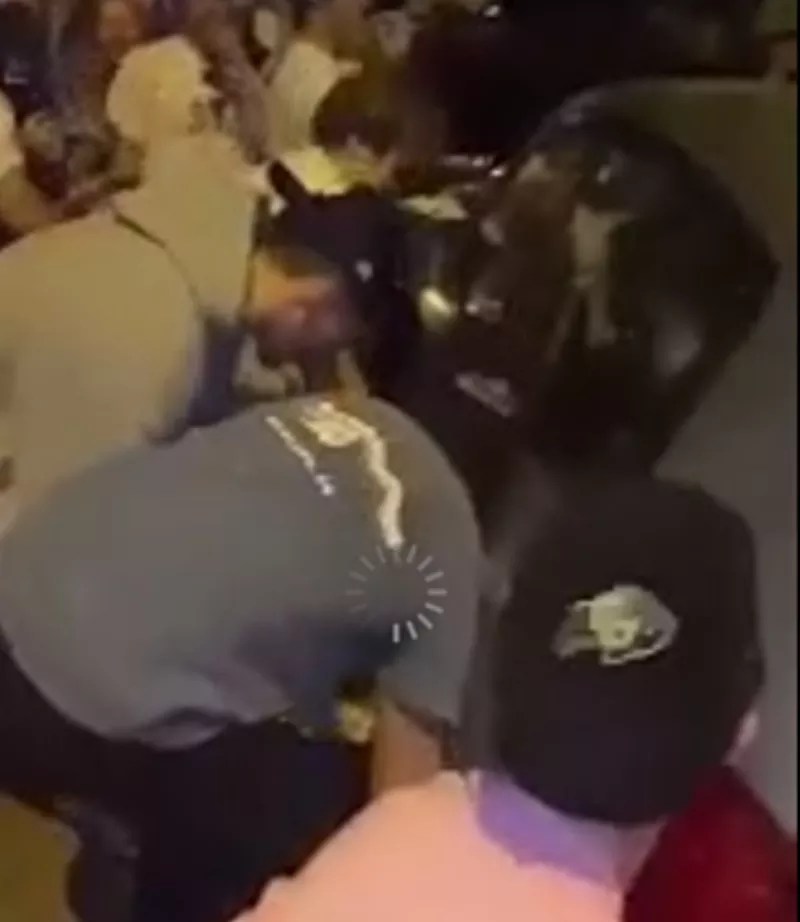 Some of the snaps are fuzzy, making precise identification a challenge — though the lack of masks should be helpful. But if some faces are hard to see clearly, other items come into focus — such as the fraternity T-shirt worn by the dude in the gallery below. And several suspects are said to have already been identified by authorities, though no names have been released.