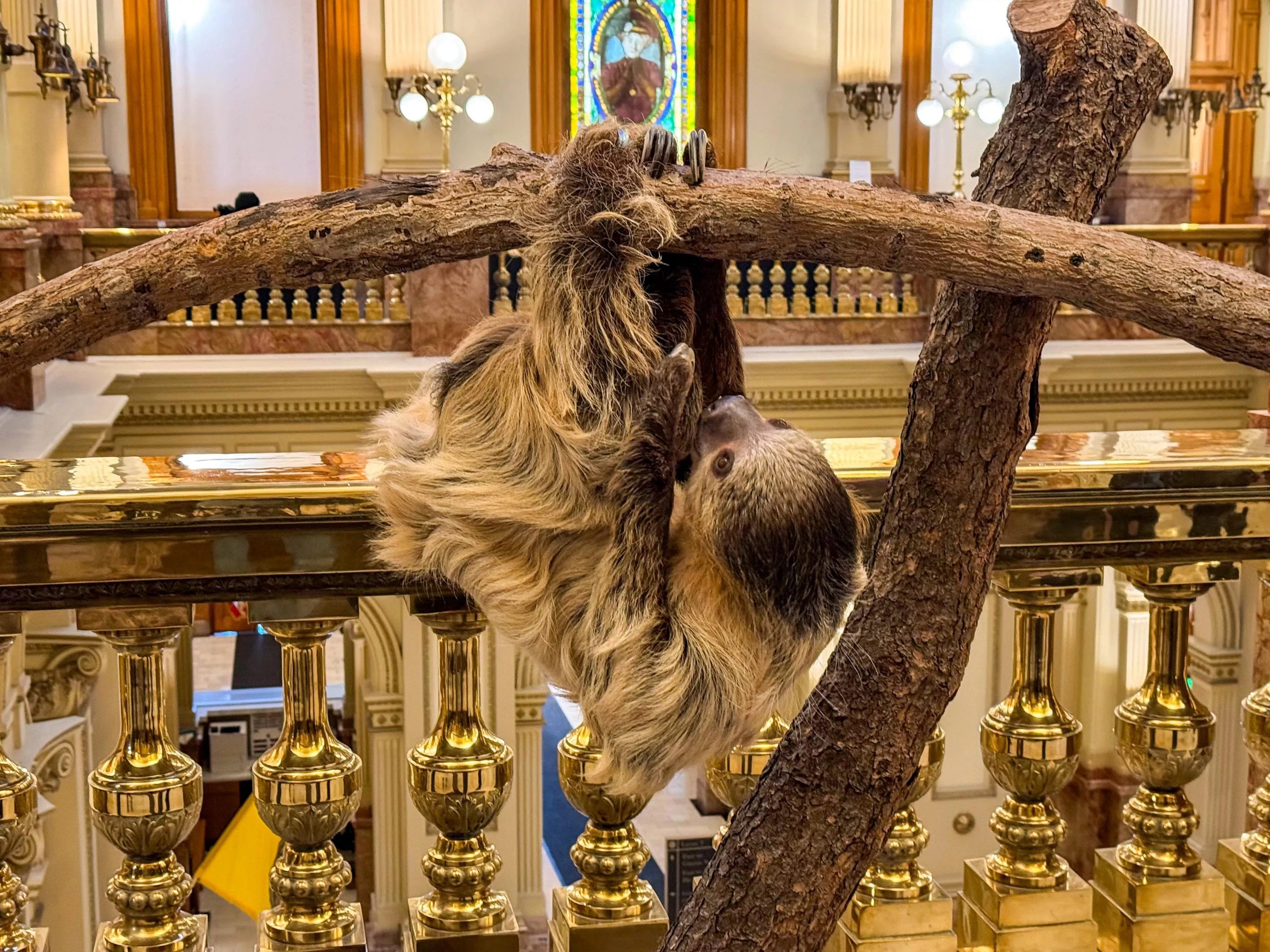 Wookiee, a Linne’s two-toed sloth, and some other Denver Zoo friends made an appearance at the Colorado State Capitol this morning for Zoo Day, the zoo’s annual celebration of its wildlife conservation efforts. Wookiee is five years old and the brother of Wicket, the Linne’s two-toed sloth that was born last January.