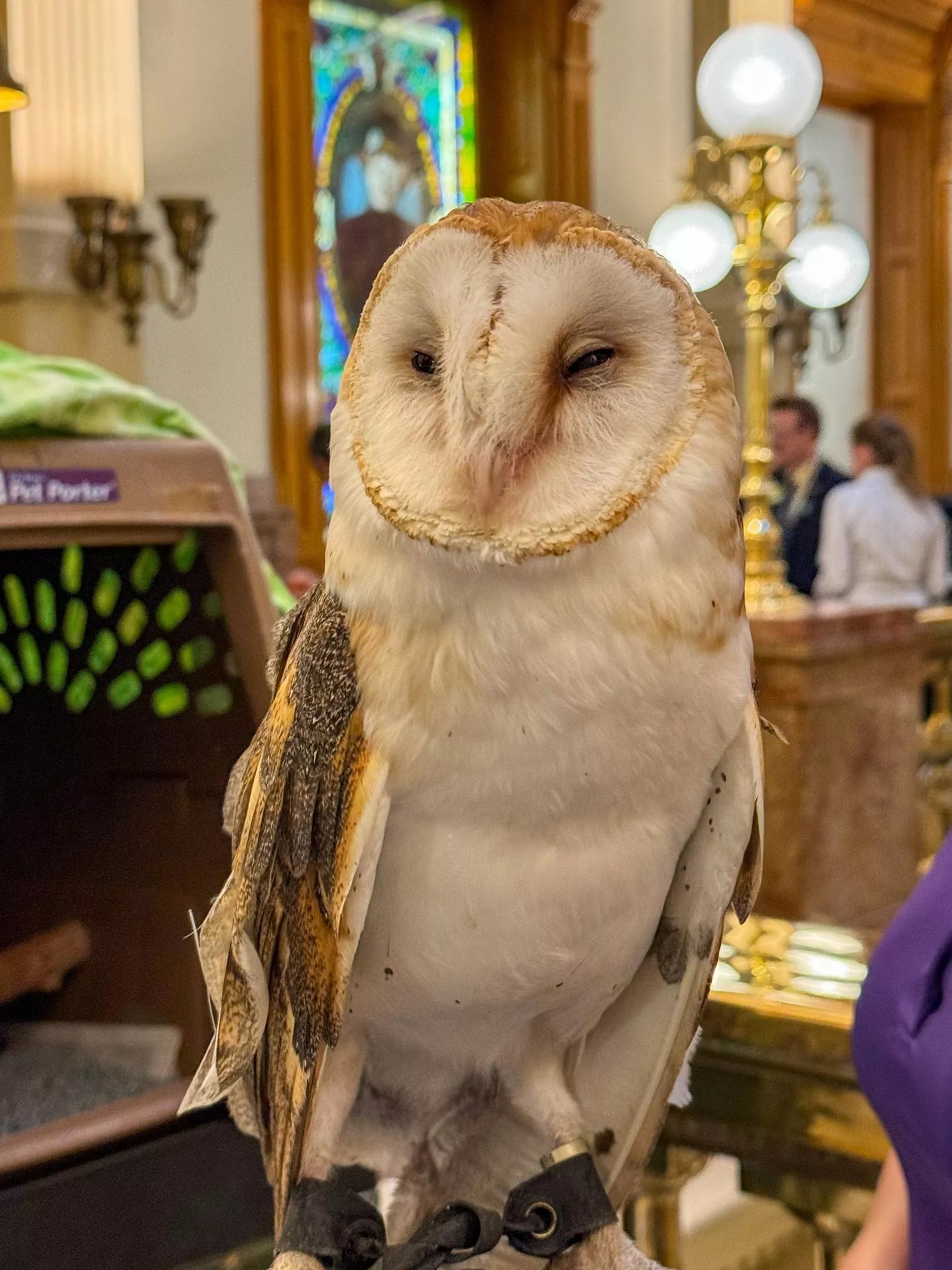 Many animal friends joined Wookiee this morning to meet state legislators and other Capitol staff, including Casper the barn owl, Jasmine the Dumeril’s boa, Eureka the boreal toad, and Peter the blue-tongued skink.