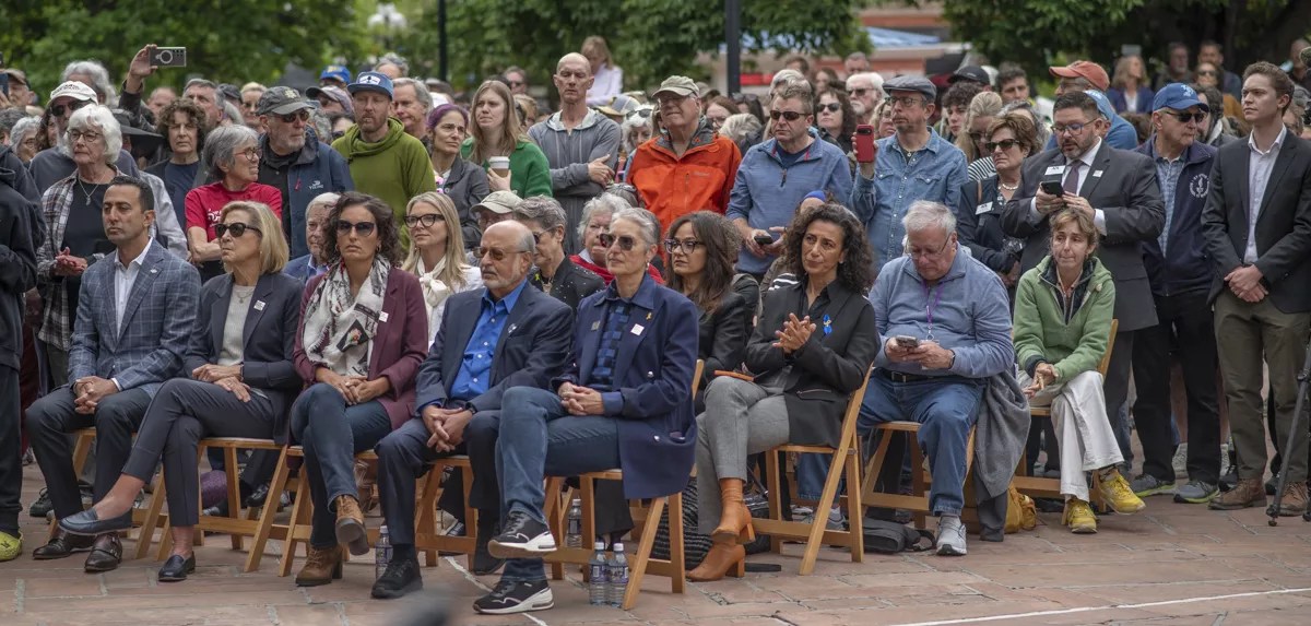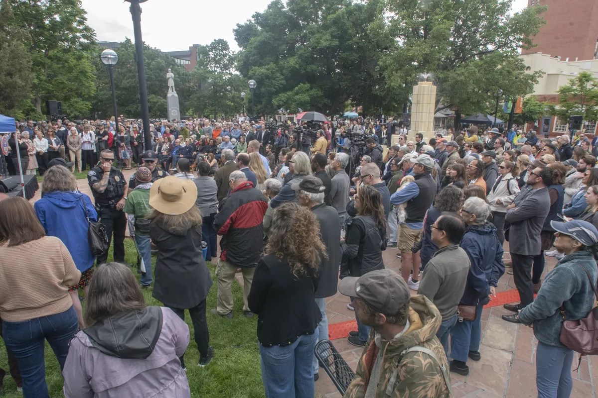 The ceremony was intended to “stand against hate” and embrace unity, according to Polis’s office. Around 500 people attended the event outside the historic Boulder County Courthouse on Pearl Street, about a block away from where fifteen people and a dog were injured on Sunday, June 1. According to police and video of the attack, Mohammed Sabry Soliman allegedly threw homemade Molotov cocktails and used a homemade flamethrower to burn members of Run for Their Lives, a group of people who meet on Pearl Street every Sunday to raise awareness about Israeli hostages remaining from the October 2023 kidnappings and massacre in Gaza.