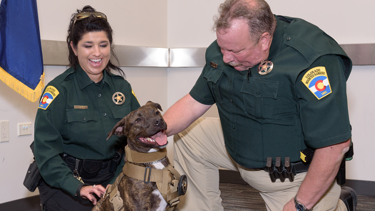 In 2017, Kara, the dog seen here, became Colorado’s first officially sanctioned drug-detecting pit bull.