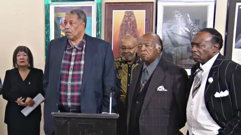 Former Denver mayor Wellington Webb was among the political and faith leaders speaking out on Representative Jovan Melton’s behalf at a press event on October 11.