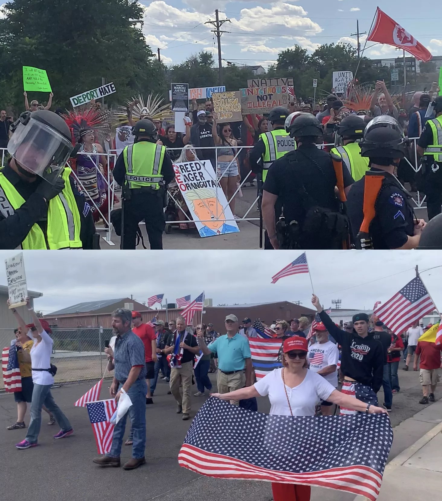 About 500 to 600 people, more or less evenly split on each side, participated, about half the amount that protested outside the facility on July 12. During that protest, a handful of demonstrators removed an American flag above the facility and replaced it with a Mexican one, which caused a national media frenzy.