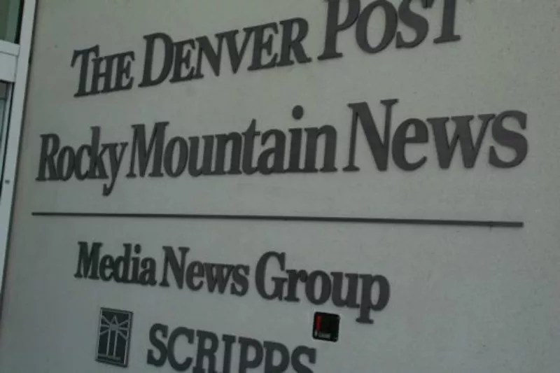 Signage from the period when the Denver Post and the now-defunct Rocky Mountain News were part of a joint operating agreement.