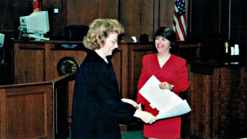 “Rebecca Bartee was born in Topeka, Kansas and graduated from Hayden High School there,” the excerpt begins. “Rebecca earned her undergraduate degree as well as her Juris Doctor from the University of Kansas. After graduating in 1984 she worked for Kansas Legal Services as a staff attorney. Rebecca enjoyed hiking and the outdoors. Her dream was to live in Denver. She received accolades for her work in child support enforcement in Western Kansas while living in Hays.”