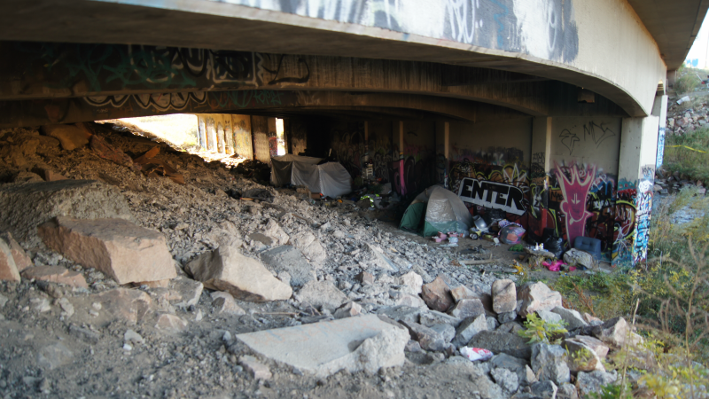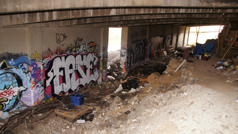 The homeless encampment was located beneath the overpass.