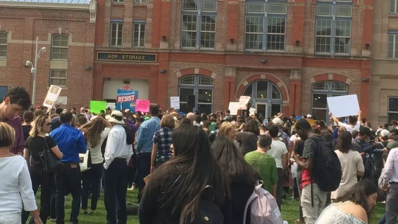 Students at RiseUp Community School among demonstrators at a protest last year.