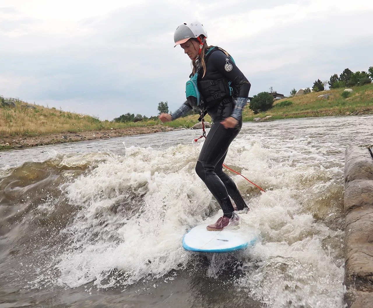 Blair’s love of river surfing has taken her to waves in inland cities like Boise, Idaho, and Bend, Oregon. She and Matchette have also been working with others in the river-surfing community to champion the construction of new river waves in metro Denver.