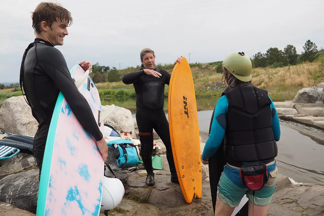 “The South Platte is strictly agricultural; the Army Corps of Engineers controls outflow from the dam at Chatfield,” Blair explains. “When they get water calls from farmers downstream, that’s when they release. It has nothing to do with recreation. We just wait for alerts and check the water-flow gauges daily to get a sense of when the surf will be best.”