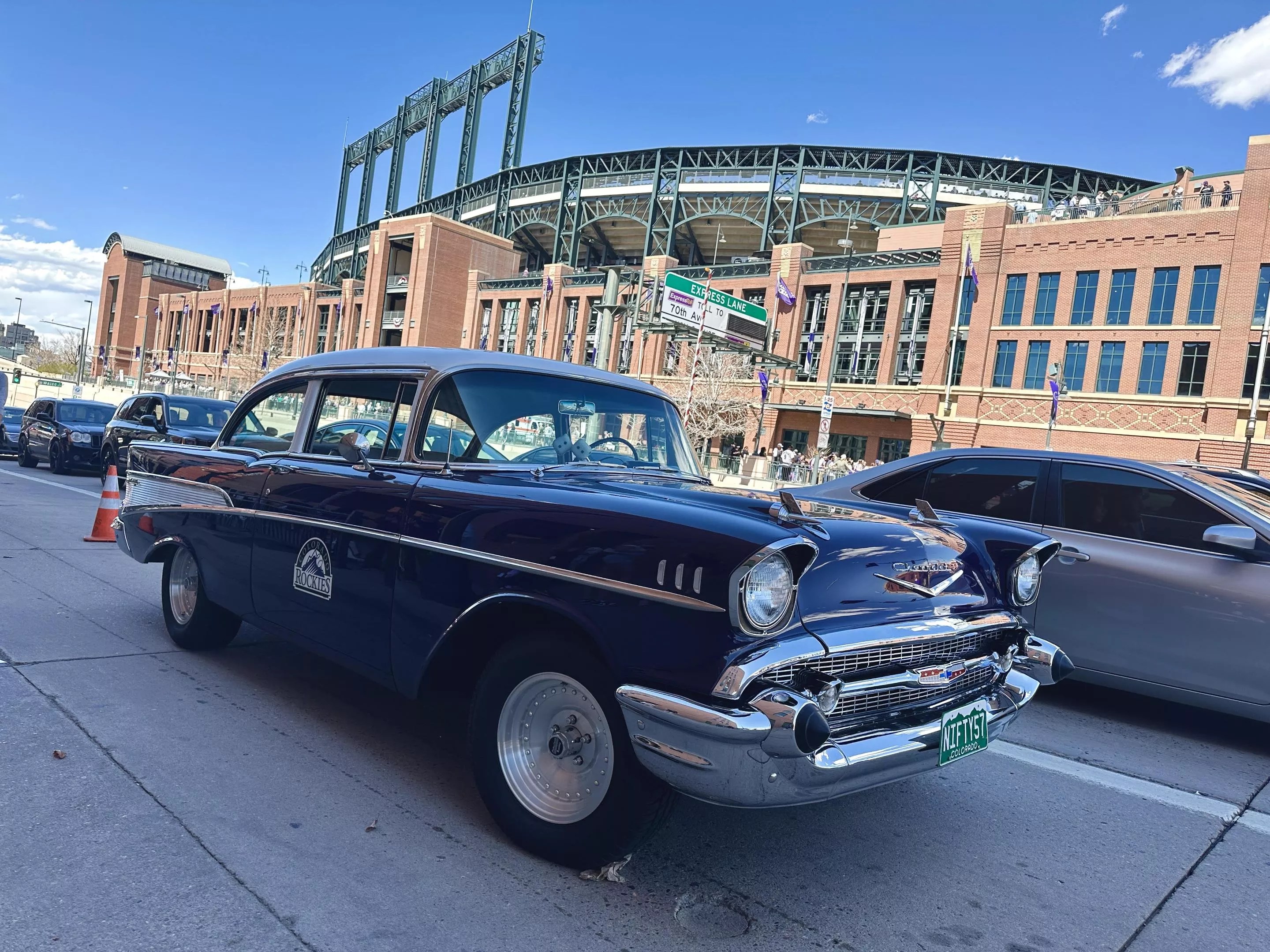 The Rockies’ status as one of the worst teams in baseball didn’t stop Dave and Karen Thaler, car aficionados from Wheat Ridge, from continuing their decade-long tradition of bringing their purple 1957 Chevrolet Bel Air to Coors Field for a cruise around the stadium for fans to see.
