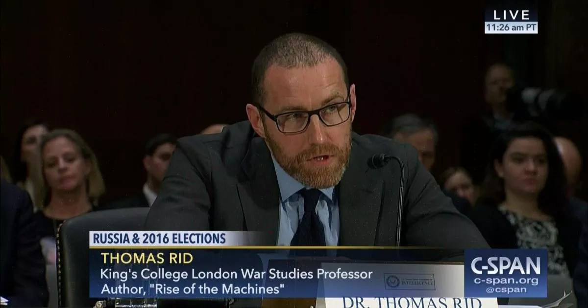Thomas Rid testified before the Senate Select Intelligence Committee in March.