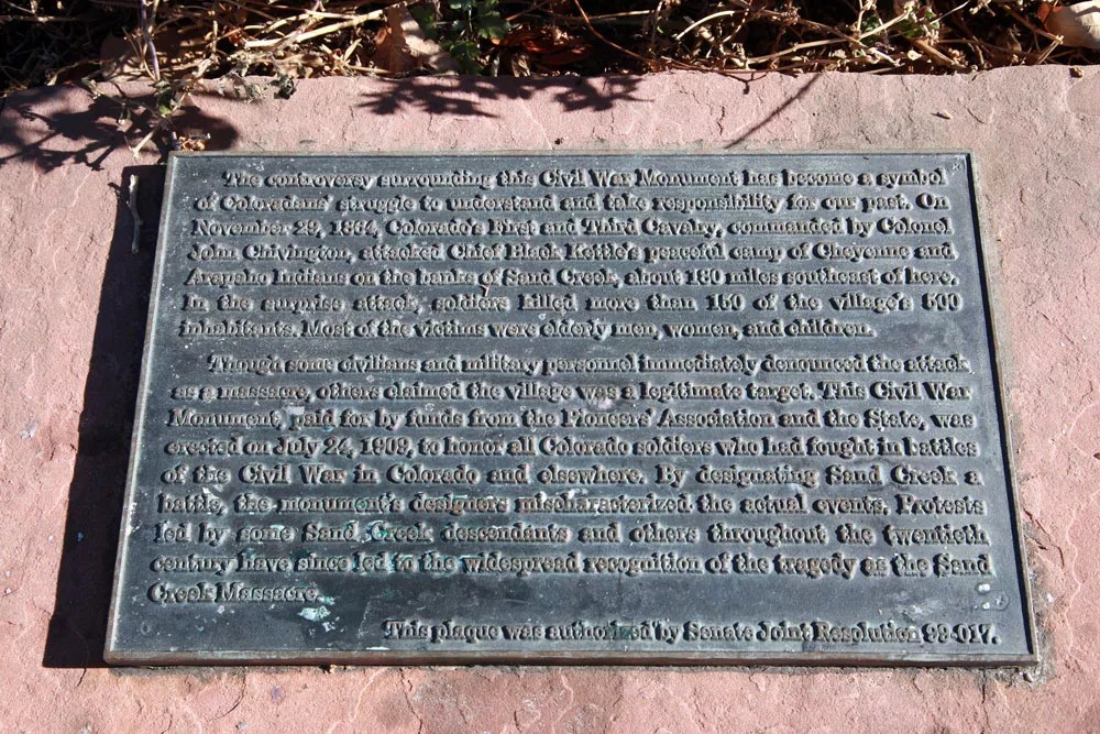 A plaque was put just below the statue, noting that “the controversy surrounding the Civil War Monument has become a symbol of Coloradans’ struggle to understand and take responsibility for our past.”