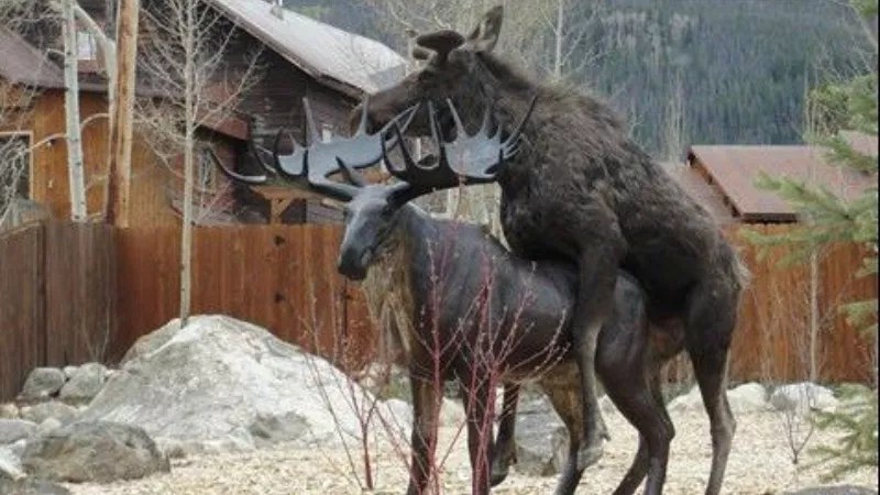 What a smart moose! Standing on that statue to see over the fence! Wait, what?….oh…..nevermind.