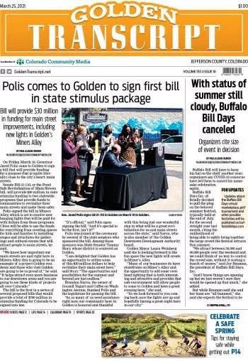 A front page from the Golden Transcript.