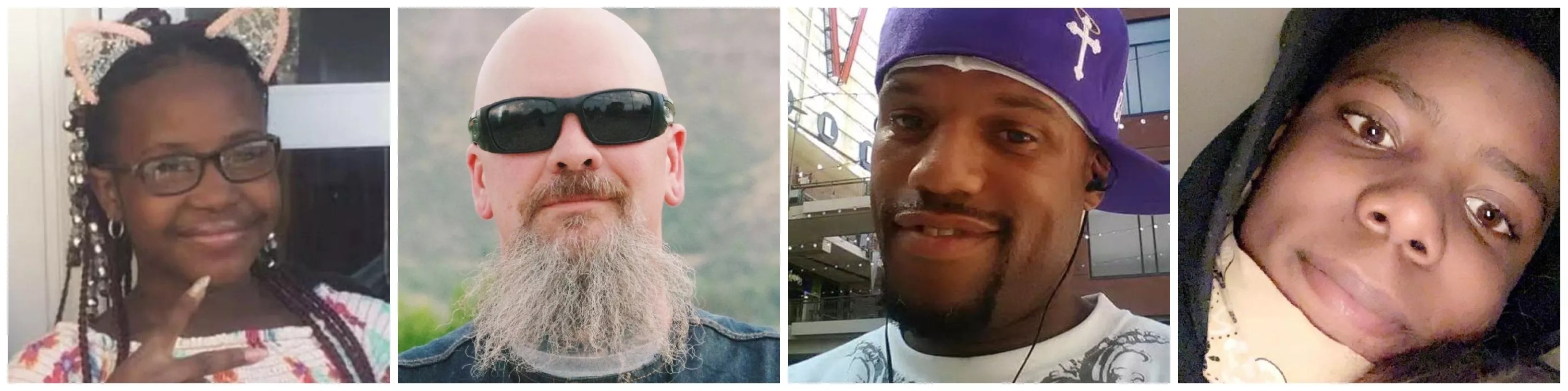 July 2020 Colorado gun violence victims Miana Charity, William Kelly Henderson, Moses John Hamm and Xzavier Collier.