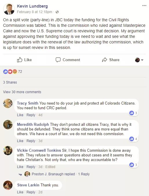 “If there’s a takeaway, it is to make the Civil Rights Division more functional for all of Colorado. I want to make it better, and I have no intention of pulling funding for it. I have every intention of seeing it function better. It shouldn’t be a commission that’s just focused on a couple of special interests. It should be focused on all of the interests of people in Colorado, and I’m troubled that it’s not been well focused in that arena,” Lundberg says.