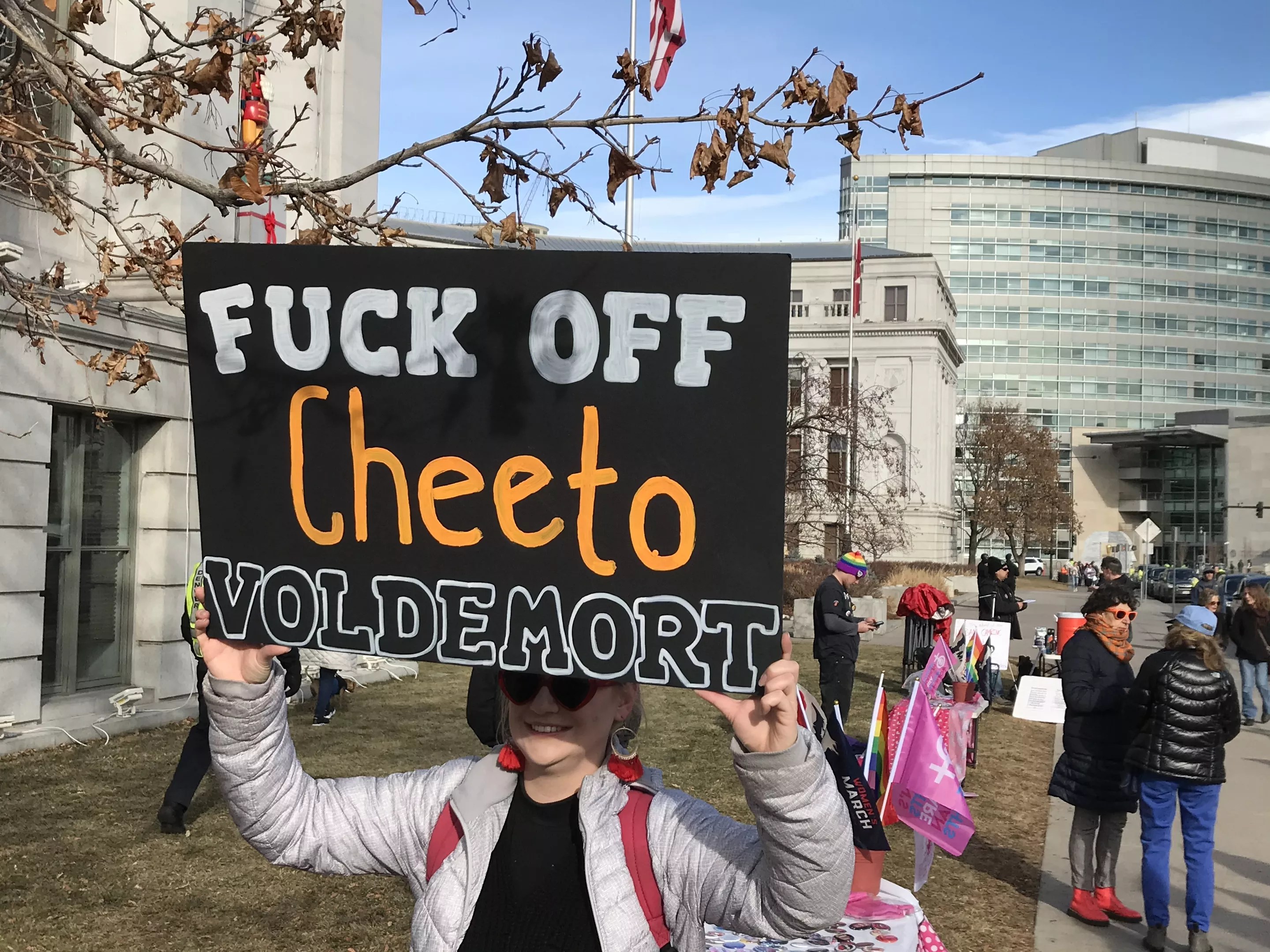 The Trump Baby was everywhere, and seemed particularly annoyed by this sign on the left. Makes sense.
