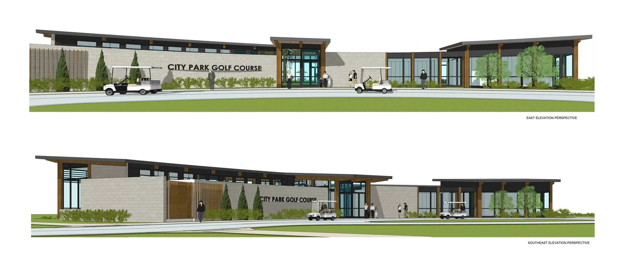 “The new, modern clubhouse will have a west-facing back patio with expansive views and enough space to accommodate golf and community events concurrently. The design includes floor-to-ceiling glass windows, materials that blend with the natural landscape and is designed to achieve LEED Gold certification,” the city says on a website for the project.