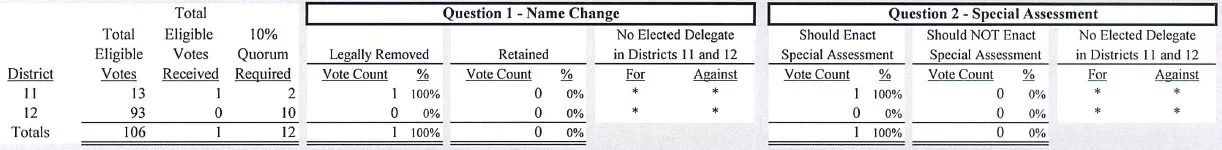 The majority of ballots cast by Stapleton property owners have voted against removing the name of a Klansman from the community name.
